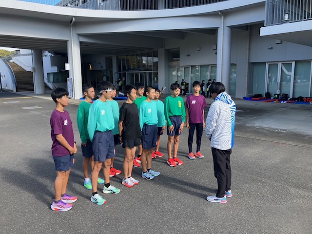 さて、女子の岡富中、男子の大淀中も入ってきました。早速コースの確認をして、調整練習を行いました。みんな元気そうです。他県のチームはインフルエンザに罹患している生徒もいるようで、、、。このまま何もなくいくとよいですね。