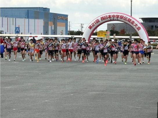 ところでその日、私は全中駅伝のライブ中継をどこで見ていたでしょう?福岡県大牟田市でライブ中継を見ていました。この日、大牟田市では西日本中学駅伝競走大会(男子50チーム、女子39チーム参加)が行われました。小林中は男子だけ参加しました。