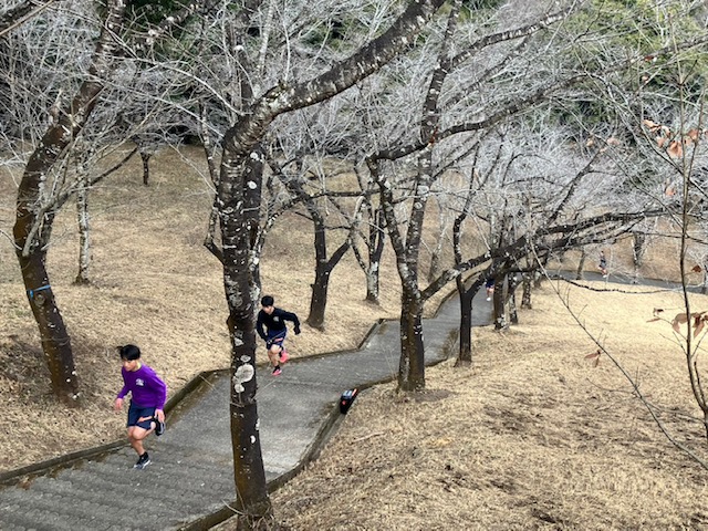 当然、私も石段は活用していましたが、下に降りていったところでトレーニングを行うことの方が多かったです。池の前の広場で動き作りをしたり、池周り(2050m)や、散策コースの階段を走ったりです。階段もどこまで(距離)走るかで、負荷を変えたり、目的を変えたりしていました。今も宮崎市の中学校を中心に活用されているのではないかと思います。