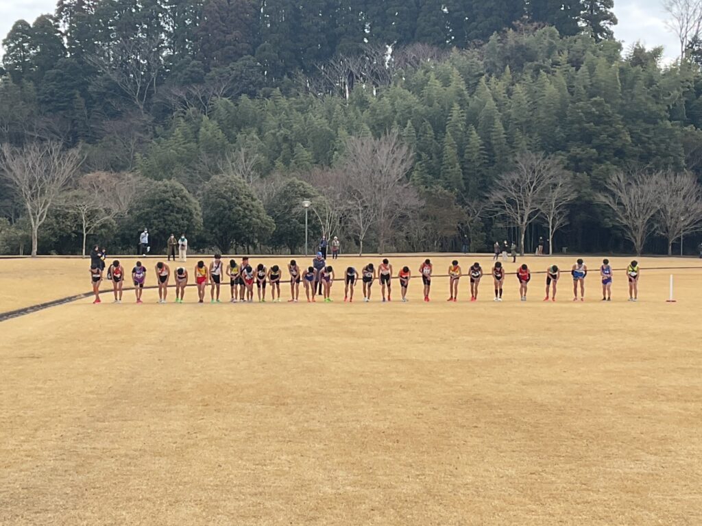 さて、今年は会場を変更しての開催となり、初めて高原町運動公園の周回コースでの実施となりました。ここは、西諸地区の駅伝予選会の会場なのですが、地区駅伝に比べ参加チーム数が多いため、1区のスタートが周回のロード上では厳しいと小林中國丸先生が判断。1区の公園内の芝生からスタートして混雑をさける作戦で行いました。